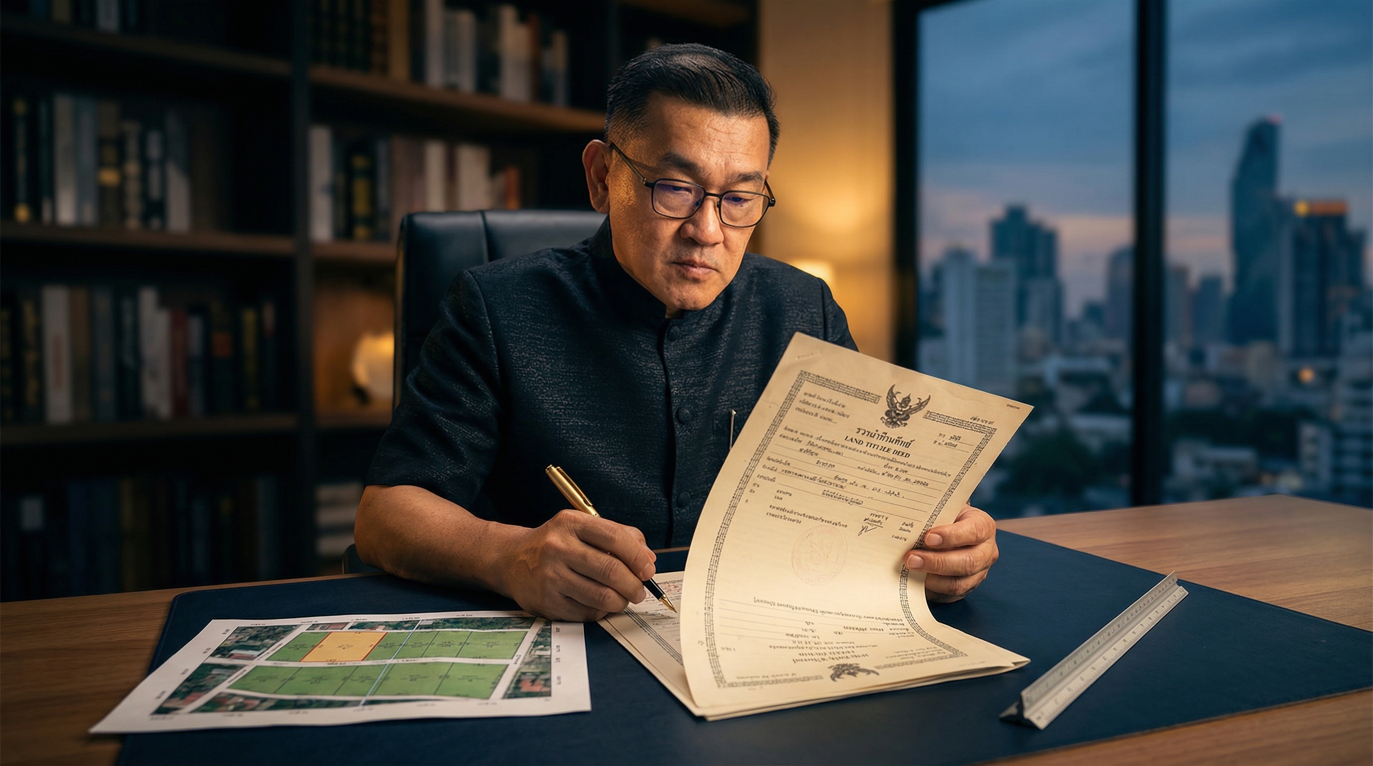 เชี่ยวชาญระบบกฎหมายที่ดินไทย — เข้าใจความซับซ้อนของเอกสารสิทธิ์ทุกประเภท ตั้งแต่โฉนด น.ส.3 ส.ค.1 ไปจนถึงสิทธิ์ครอบครอง