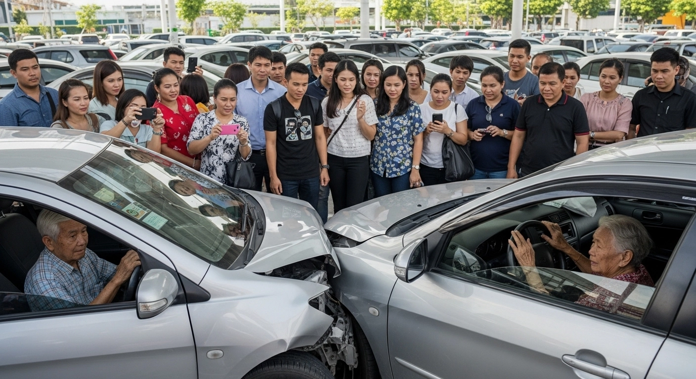 รถชนในห้าง! ตำรวจไม่มา? 🛑 ทำอย่างไรให้ได้ใบแจ้งความเพื่อเคลมประกันและเอาผิดคู่กรณี